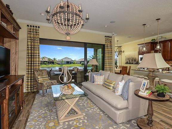 This Trevi VII home is a 3 Bedroom split plan plus Den, formal Living and Family rooms, 2-car garage, GE stainless steel cooktop, dishwasher. Granite tops in Kitchen and Baths 2 and 3, Master Bath. Double Master Suite shower heads, 8'' doors throughout. Gated neighborhood of tiled roof homes, paver driveways, maintenance-free grounds. Home comes with golf membership to Esplanade Golf & Country Club, use of all amenities. Only $2,550 annual golf dues. Former Model home, professionally decorated. Move in Ready.