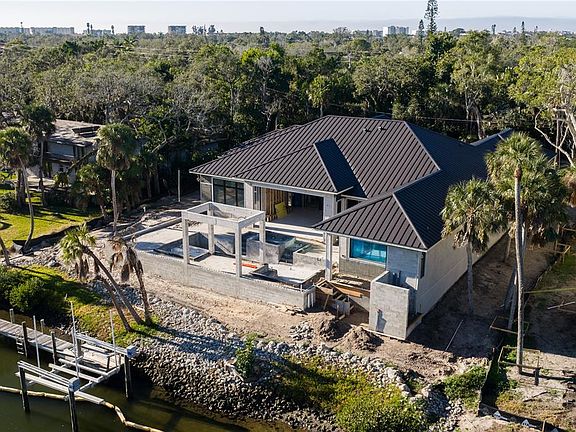 One or more photo(s) has been virtually staged. Under Construction. This brand-new waterfront estate is being brought to life by Dynan Construction, Sarasota’s premier local luxury builder celebrated for impeccable craftsmanship, architectural integrity, and enduring coastal design. Built to the Fortified Gold Standard, the residence is engineered for long-term resilience against Florida’s coastal elements while embodying the artistry and refinement that define Dynan’s signature builds. Interiors are curated by acclaimed designer Annalise O’Brien, ensuring every space reflects elevated taste and timeless sophistication. This 5-bedroom estate features 5 full baths plus a dedicated pool bath and powder bath, offering a rare combination of durability, modern design, and everyday luxury. A separate renovated guest cottage provides the perfect setup for multigenerational living, extended guests, or a private studio/workspace. Located in the exclusive Hidden Harbor community—an enclave known for its mature landscaping and lush tropical canopy streets—this property sits on a deep-water canal with direct access to Sarasota Bay and the Gulf of Mexico. Designed for effortless coastal living, the home is equipped with smart-house lighting controls and is prewired for security, cameras, and full indoor/outdoor surround sound. The home is also prepared for a future whole-house generator installation, offering peace of mind for year-round living. Expansive 10-foot sliders frame the waterfront views and create a seamless flow between the interior and exterior spaces. Outside, the resort-style pool and spa, integrated pergola, and fully equipped outdoor kitchen provide an exceptional extension of daily living and entertaining. Inside, each room showcases curated designer selections, elevated finishes, and thoughtful details throughout. A spacious 3-car garage offers ample room for vehicles, storage, and recreational equipment. Just A short bike ride from the world-renowned Siesta Key —this home captures the essence of Sarasota’s coastal lifestyle with unmatched convenience to beaches, dining, and local amenities.