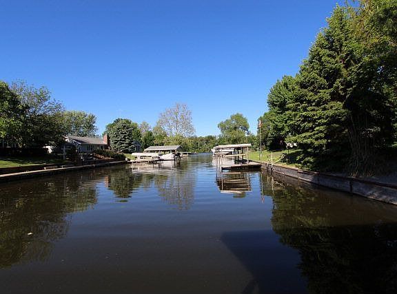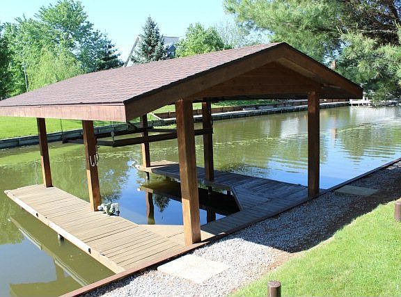 A Lake Home with Character! One of a kind setting with over a 1/2 acre, mature trees, 161 ft of bay frontage & a park like setting. Exterior includes a sea wall with covered boat lift, composite deck, patio, balcony, & a shed. Home offers 3 bedrooms, 1.5 baths, 2044 sqft, vaulted ceilings, floor to ceiling stone fireplace, 2 car grg, freshly painted & new flooring. The maintenance of this home has been exceptional. Immaculate inside & out! Low maintenance & ready to go. See virtual tour!