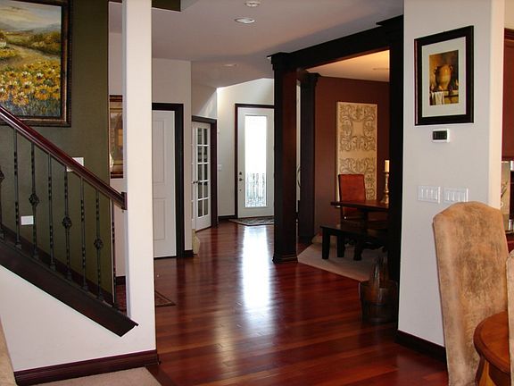 This home is open & bright w/over $21K in upgrades, included stain grade columns w/white painted doors,Wrought Iron Spindled railing, Jetted tub, security system, speaker wiring, glass pantry door & closets upgrades. High ceilings, beautiful Brazilian hardwood floors. Great Room concept w/gas FP & built-in cabinets. Gourmet Kitchen w/center island, granite counters & walk-in pantry. Master suite w/Retreat area w/cozy FP, 5 piece bath. Professionally landscaped yard w/over $14K in upgrades.