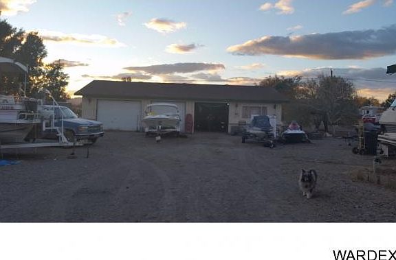 Large .52 Acre Lot, 1274 sf. Garage, RV parking, Block and Fencing around Property. 1,598 sf home with 2 bed/2bath home with Fireplace, dining room, Utility room, formal living room. Property is on well (20ft deep) with own Well house, and Septic. Close to shopping, Casino and Colorado River minutes away.This property has so much to offer, must see.