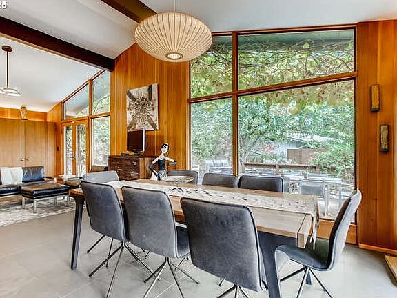 A prime John Storrs Mid Century Modern is waiting for you. Part of a great history, 4 friends in 1957 had John Storrs build 4 homes on an acre, just below the trail to Fairmont and Council Crest Park, this home, known as the Wilson House, nestles into the SW Hills above Hillsdale with expansive views in a tranquil neighborhood. The outdoor living is exceptional with an expansive walk-out patio from the main floor and front deck that beckons all for sunset viewing. Below is a stone patio with garden landscaping color all year round. The small hillside is filled with hydrangeas that love the limelight and stairs leading you to a larger stone patio with a fire pit and chairs. Thoughtful modern restoration was sensitively applied to this custom built home with the clear vertical grain fir wood re-sanded and oiled to bring out its original beauty. The kitchen was designed to appear original with new cabinetry seamlessly blending into the restored pieces. A cooks dream with all Fisher Paykel appliances and built-in Miele convection steam oven combo along with the two deep built in storage cabinets to store all the kitchen items one might desire. The downstairs incorporated small design changes as it was remodeled down to the studs. A work room became an ensuite primary alternative or guest room. An approximate 400 wine wall was built in and insulated to not require refrigeration and a half bath/laundry was added in addition to a wired sound media room with built-ins and sink for convenience. Another work room was converted to a small bedroom or could be part of the primary downstairs as a large dressing room. An office was created using the fireplace as a backdrop. Upstairs the newer fir doors were added to match the fir windows creating consistency with the mid-century look as do the newer floor coverings, refinished hard woods and wool carpeting. Such a great home and setting in the fun Hillsdale and Multnomah area. Seller is licensed realtor in state of Oregon [Home Energy Score = 2. HES Report at https://rpt.greenbuildingregistry.com/hes/OR10237903]