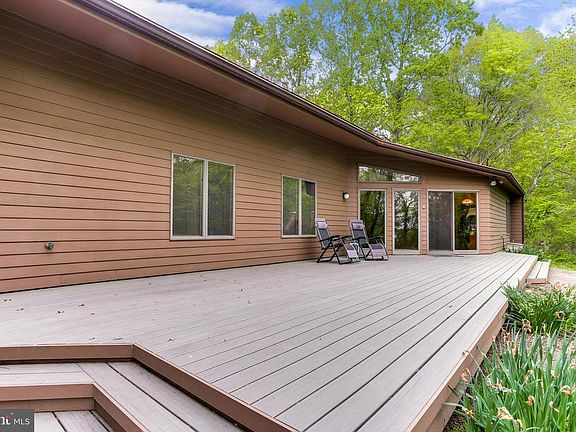 One of a kind--Almost 2500 sq ft Contemporary rancher on 2.23A wooded lot which includes a separately deeded 1.08 lot (5227 Talbots Landing) w/ building potential. Conveniently located but so private. Wonderful 1 level living. Enter the house to the great room (Living Rm, Dining Room and Breakfast area) with soaring ceilings. Kitchen pass thru to Great room. Extra Large Master Bedroom suite with large sitting area and 3 season room with hot tub. Laundry rom off Kitchen. Large Deck off the back of the house. Ex-large 2 car garage with built in storage space. 1 YR HMS Warranty for buyer. Have an RV--parking space & 30AMP Hook Up and No HOA.