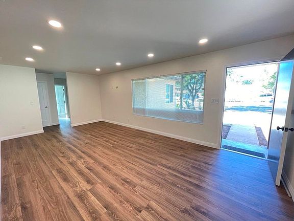 Wonderful Allied Gardens house with lots of upgrades including premium vinyl plank wood flooring, recessed LED lighting in every room and new vinyl dual pane windows. Brand new kitchen with white shaker cabinets, upgraded stainless steel appliance package and quartz counter tops. Sunny and spacious living room. Each bedroom has mirror door closets and ceiling fan. Both bathrooms are completely new. Two car garage with automatic garage door and additional parking in driveway. Private fenced-in yard with covered patio great for entertaining. Home is equipped with new central gas heat and a/c. Tenant pays water & sewer, gas & electric, trash, and cable/internet (optional). Landscaping paid by owner. Central location close to shopping and freeways.