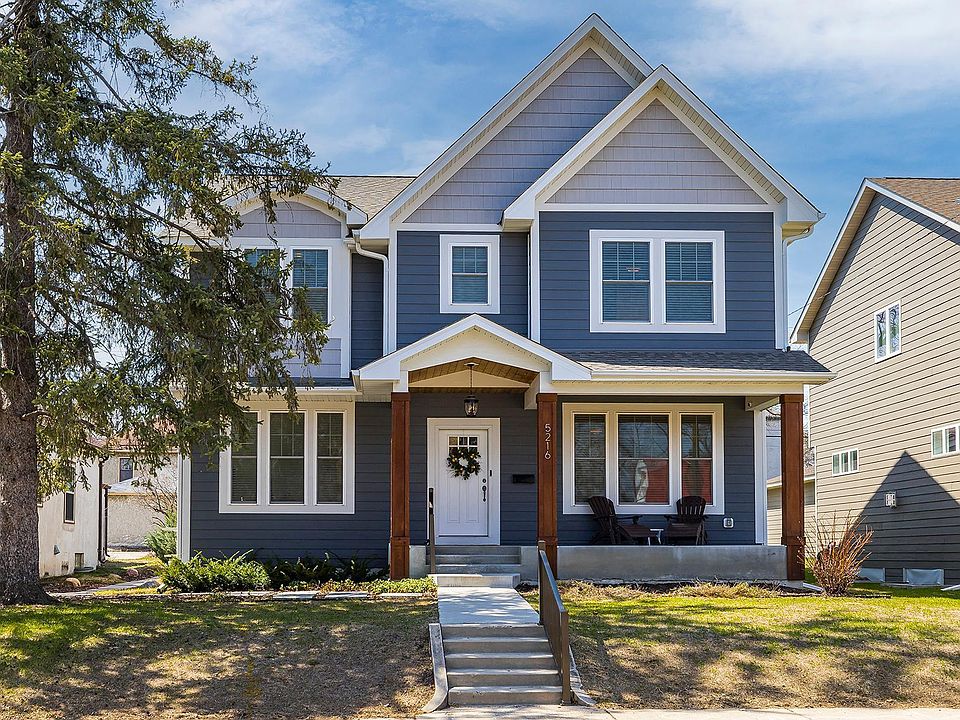 Stylish, spacious 2016 build near Lake Nokomis! The gracious open front porch welcomes you inside to the open modern floor plan, including a sunny and bright living room with gas fireplace and a true chef’s kitchen with large center island, quartz counters, stainless appliances, and custom cabinetry. The dining room is open to the kitchen/living spaces -perfect for living & entertaining! Work from home from the private main level office, and the cutest powder room + mud room off the backyard round out the main floor. Upstairs, find 4 bedrooms and 2 full bathrooms, including a spacious primary suite with walk-in closet, double vanities, soaking tub and walk-in shower. Lower level is ready for your finishes – a perfect space for a family/bonus room + future guest suite! Outside, enjoy the oversize 2+ car garage and rear patio. Enjoy superb walkability to Lake Nokomis, trails along Minnehaha Creek, and a bevy of local shops and restaurants. Truly ready to move in and enjoy!