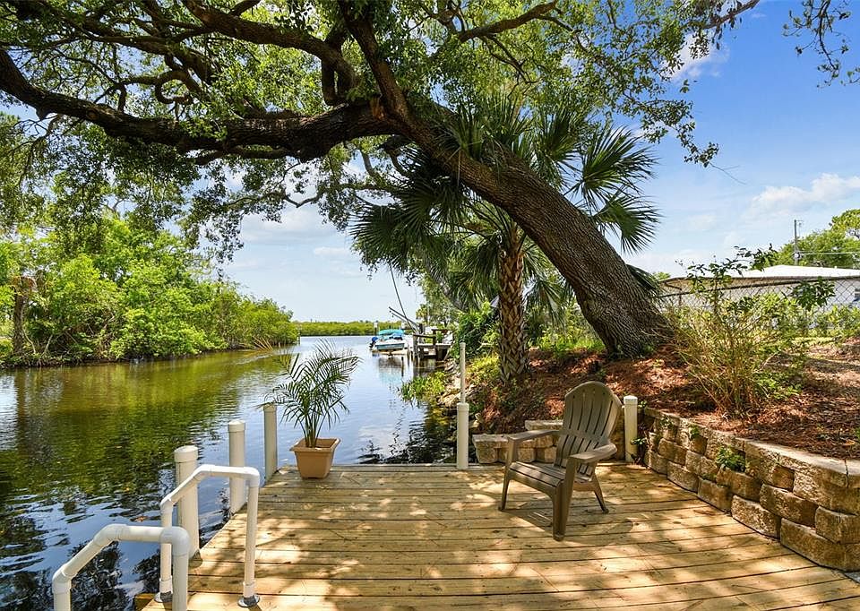 Unbelievable home! located on a canal that leads to open waters of Braden River, then to the Bay, with a private dock in back. This is a 2 bedroom, 2 bath home with screened lanai and patio, perfect for sitting out back and enjoying the water. Roof (2017) newer ac (2022), new exterior paint, windows were replaced several years ago. New landscaping. Garage states 1 car garage but it is built as a 2-car garage but with one garage door, there is a workshop. There is No HOA here. Plenty of room to park a boat or RV in the backyard. Short distance to I-75. Don't hesitate to see this home, put it on your list to see!