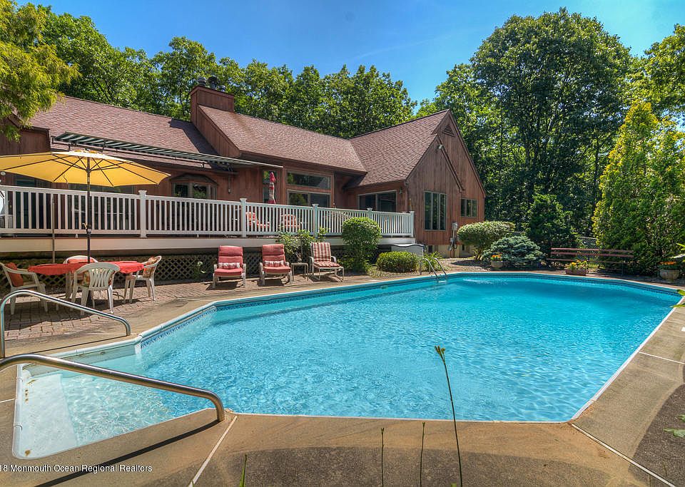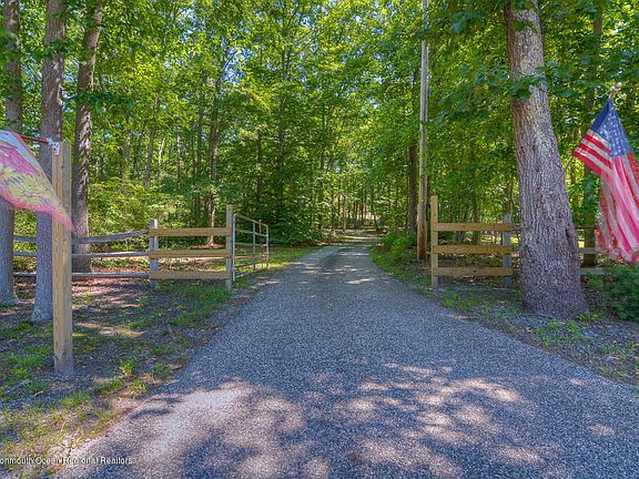 Up a long private driveway, you will find this Country Oasis nestled on over 5.5 secluded acres! This pristine 2800+sqft Contemporary Ranch is a must see for those who want to be close to everything but away from it all! Features include a master suite with access to the back deck, 3 more spacious bedrooms, a home office, 2.5 baths, a wood burning stove to keep you cozy in winters and an in ground pool for hot summers. There is a huge basement with endless possibilities and an oversized 2 car garage. Want farm animals? They will love the luscious grass pasture with new run-in shed and a paddock that includes a 2 stall barn with storage. Did I mention Location! Only 15 minutes to the beaches or malls and just a few miles to the GSP, 195, Routes 18,33,34,35 & charming downtown Farmingdale!