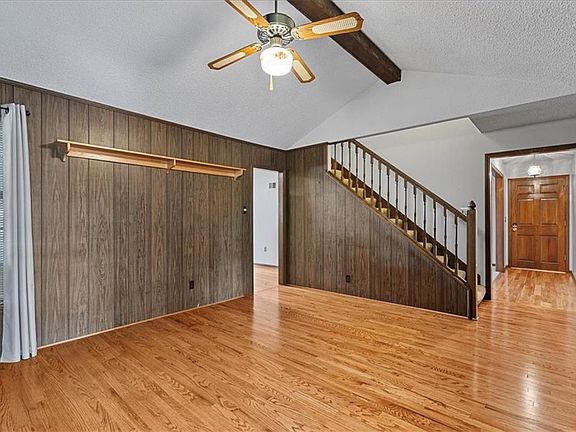 Welcome to this spacious and inviting home, featuring a fantastic floor plan and ample room to grow! The kitchen features granite countertops, stainless steel appliances, and an eat-in dining area that flows seamlessly into the formal dining and living rooms. The main-level living room features vaulted ceilings, a cozy fireplace, built-in shelving, and hardwood floors.