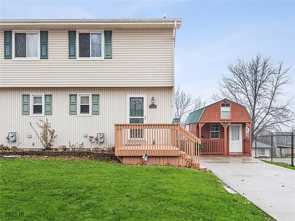 Very nice bi-attached home. Larger than it appears. Updated kitchen w/ eat-in area & all appliances stay. Large deck off living room that overlooks fenced yard. 2 good-sized bedrooms up & updated full bth. Basement walks out to covered patio & yard. Large laundry & storage room. Huge shed for extra storage. No dues or covenants & move-in ready!