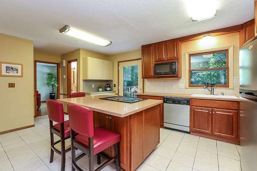 A traditional, 2-story walkout on Nine Mile Creek. A lovely living room with views of nature, & cozy wood-burning fireplace; a perfect place to easily entertain a large group or an host an intimate gathering. Beautiful hardwood floors, open & updated kitchen /lrg island, huge deck and patio overlooking the flat,fenced yard. 4 nice sized bdrms upstairs plus bdrm and bath in the walkout/rental unit Wonderful spaces for all to enjoy or option for rental space separate from the rest of the home!