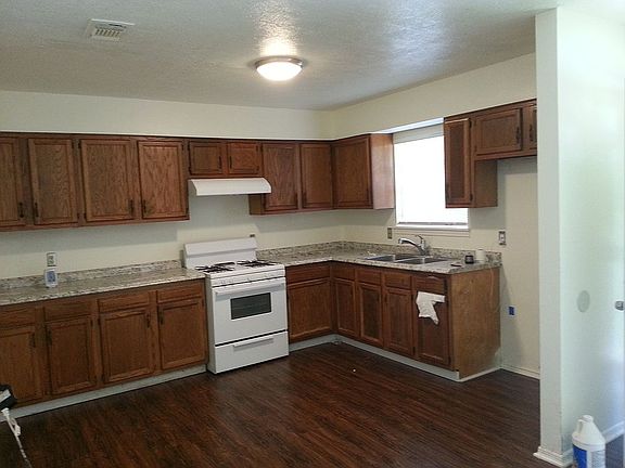 Cute house - vinyl siding - stainless steel gas stove, microwave, blinds, utility room in house, fenced yard, bugular bars on doors and windows, eat in kitchen, brand new upgrade carpet, walk in closets, ceiling fans, central air and heat, washer and dryer connections included.