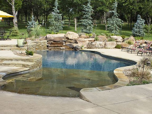 Charming remodeled estate home in 2013 is set in the beautiful rolling and wooded hills of East Edmond in Canaan Creek Farms. This estate sits on 2.5 acres in a gated community with HOA and great neighbors. Close to - Nationally Recognized - Edmond schools. Residence has approximately 3,000 square feet with 11 total rooms including 4 bedrooms and 3 full bathrooms. The residence was remodeled in 2012-2013 with a pool and new fence added in 2010. A new Master Spa and Backyard Retreat provide for a high quality lifestyle as well. The Backyard Retreat is highlighted by a beautifully landscaped saltwater pool (6 ft. depth) with a large beach entrance, stone waterfall and sunning platform. The pool is heated by an economical “heat pump” heater and all the equipment is hidden within an esthetically pleasing equipment room. There is an upscale commercial kitchen covered by a cedar pergola where a gas grill, ice maker, refrigerator and double stainless sink reside. A roomy sitting custom counter area for 8 is constructed of a beautiful granite counter and stone accents. An oversize 8’ X 8’ stone fireplace supports a cedar gable roof and all the areas have complete accent lighting for amazing evening viewing. There are three levels within the Backyard Retreat for sitting, dining and sunning for the entire family. This Backyard Retreat is great for entertaining, families or just relaxing. There is a totally fenced ½ acre backyard with 4 gates (which meet the city pool codes) installed in 2010 and encompasses new professional landscaping. There are three storage buildings and a fenced garden area. The home has 5 remodeled rooms which were completed in 2013. The residence has 2 bedrooms downstairs with 2 full baths and 2 bedrooms upstairs with 1 full bath upstairs. The Master Spa has nearly 400 square feet of cedar lined walls and vaulted ceiling with floor to ceiling windows for viewing the adjacent woods. The Master Spa has a 7’ X 4’ walk in shower and translucent stand-alone soaker tub, both a man and women’s sinks with a full vanity. A propane stove provides both heat and a great look for this resort type room. There is abundant storage in the Spa as well as the remodeled master closet with lots of build ins. The room has pocket-doors for ease of use and space. Unique situational lighting makes this room relaxing and fun, a place to get away from the world and relax. There is also an “exercise room” with a vaulted ceiling and floor to ceiling windows, wired for a television and has room for a stacked washer and dryer. This room sits upon a large “safe room”. The Kitchen has remodeled cabinets in 2012 with new designer granite, wood floors and new accent lighting. A Farmers sink adds flair to the newly remodeled kitchen as well as the remodeled Mud Room with new cabinets, areas for outside gear and a pass through to the outdoor kitchen. The upstairs banisters are crafted with new custom made iron work with a beautiful upstairs railing connecting the two bedrooms with extra large walk-in closets. A separate dining area resides just off the kitchen and residence entry for ease of use. The residence has wiring in the Master Spa, Living and Outdoor areas for Television and speakers for use with stereo sound. There are two separate propane tanks supplying two separate HVAC zoned systems along with two tankless hot water systems and two water conditioner systems. A security system was installed in 2012 and has both motion detectors and cameras. The residence has a full sprinkler system also. The residence uses well water, a septic system, city electricity and refuge as well as satellite TV and Internet Service.