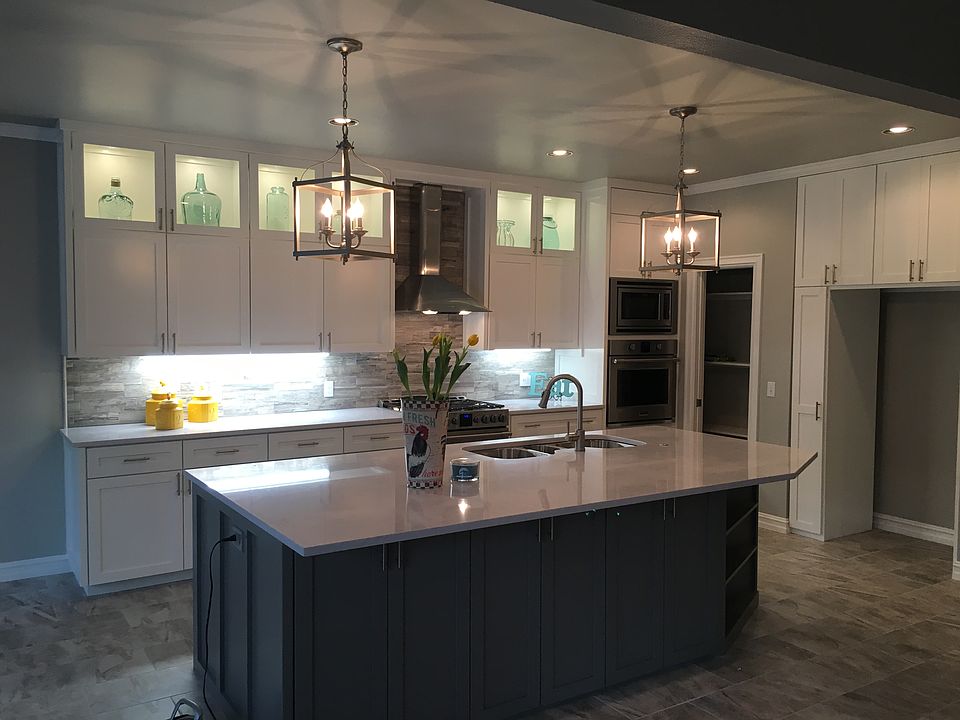 Newly remodeled, new carpet, bamboo floor tile, new kitchen & kitchen appliances, gas range & an additional built-in oven. Quartz in kitchen & master bath. Master bath w/free staudy tub and spa shower. Double block shades of grey & white throughout.