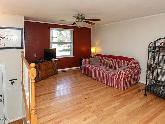 Nestled in the back of a cul de sac and backing up to a wooded area, this fabulous 4 bedroom 1.5 bath home has some much to offer the growing family.The first floor of this bi-level has a large living room that is open to the dining area and kitchen. Off of the dining area is also sliding doors going out onto a large deck. Wonderful ''Real'' oak hardwood floors are on the entire main floor. The kitchen includes a full complement of appliances that will stay, great cabinets and an island. The countertops are all natural granite and really stand out. The main floor bathroom has new tile. This floor has the Master Bedroom and two more bedrooms, one that contains a built in bunk bed system. You have got to see that.