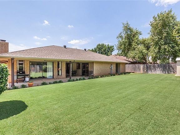 Wonderfully well kept home in Bluff Creek. From the addition you are close to all the amenities of Hefner lake and Memorial shopping. The home has beautiful travertine throughout this has been immaculately installed. The entry has privacy and powder bath, the living/den is big enough to hold an extra sitting space or dining table and has a fire place and bar. The formal dining doubles as a study if needed (see pictures). The kitchen has newer counter tops and some appliances. All bathrooms have been updated to have granite counters. The master is large and has access to the back yard. There is one big patio with two sitting areas and large space for pets or gatherings. This home really offers a lot come check it out.