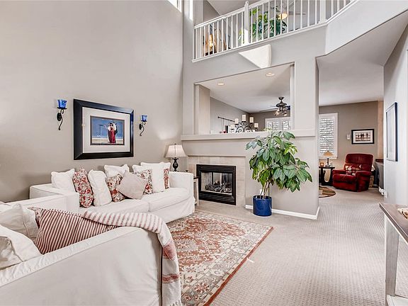 This beautifully updated 2-story in The Bluffs at Saddle Rock features 3 beds, 2.5 baths, family room & living room, loft, kitchen and 2 car attached garage. Many of the expensive updates have been done newer windows, updated kitchen & appliances, updated bathrooms, updated lighting & paint, closet systems, newer carpeting and more. The energy efficient furnace, central air, gas fireplace and ceilings fans keep this home comfortable all year long. Enjoy relaxing on the deck in the spacious back yard or people watching from the covered front porch. The neutral tones throughout make it easy to picture yourself calling this one home. Pride of ownership shines throughout this lovely home. Move-in ready. Close to dining, shopping, entertainment and other amenities. A short commute to Denver, the DTC, Greenwood Village, Southlands and beyond. Don't miss your opportunity and Welcome Home!!!