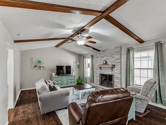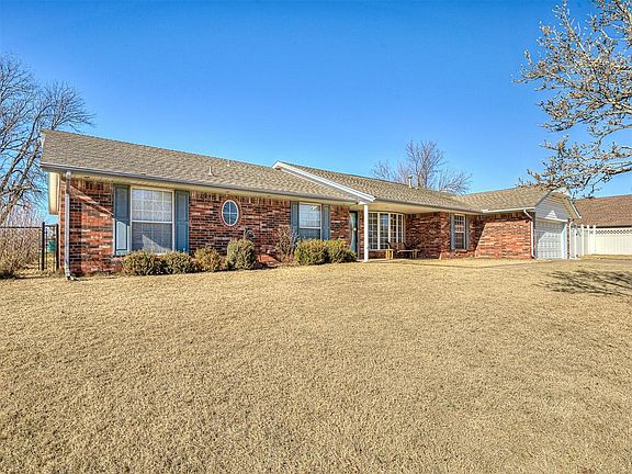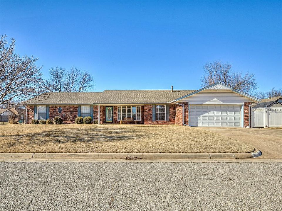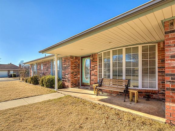 Welcome home to this beautiful well-maintained home nestled on a quiet corner lot! This spacious home features 4 bedrooms, 3 bathrooms, a mother-in-law suite with full bath & walk-in closet, fully fenced with lots of updates throughout! As you walk through the front door the home is filled with lots of natural light that opens up to the living room that features beautiful exposed wood beams, a wet bar & a floor to ceiling gas fireplace to cozy up to on colder days. New flooring & carpet throughout, all interior walls have a fresh coat of paint & lots of built-in storage! The kitchen offers copious amounts of storage that leads into the formal living and formal dining area. The primary suite features a full bathroom & two closets one of them a walk-in closet. 2 large secondary bedrooms & another full bathroom with double vanity sinks! The covered patio is great for entertaining & lounging with lots of yard space! Designated laundry room with additional storage space! New ceiling fans & light switches, touchscreen & programmable thermostat, backyard & area in front of porch has been resodded, New wood fence with extra large gate, new brick mailbox with key lock storage, updated deadbolts & keypads with Kwikset locks, channel drain installed in backyard, French drain installed in the side yard & Storage Shed. Neighborhood Amenities include a Park with playground for kids, walking path, tennis court & shaded pavilion. Just minutes from nearby shopping, restaurants & Tinker AFB!