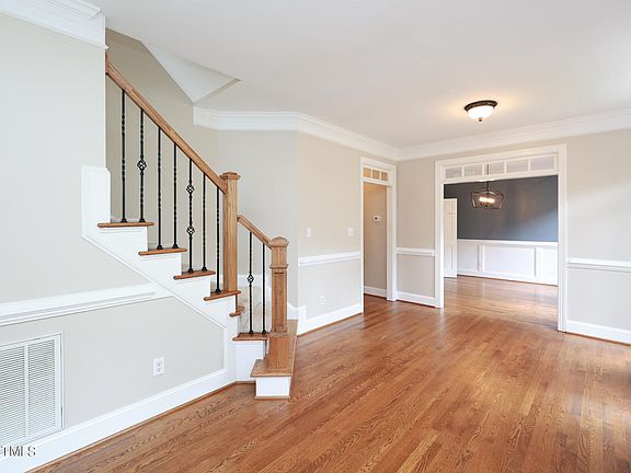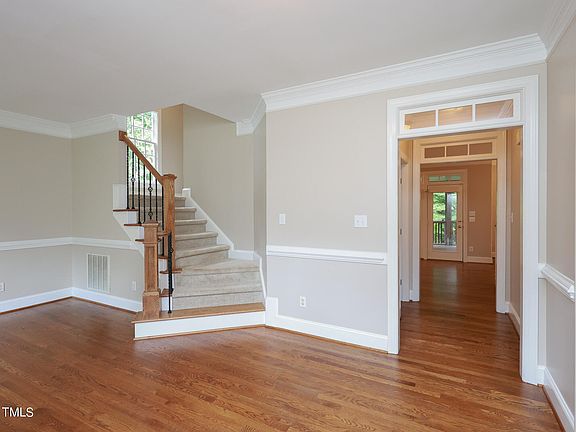 CORPORATE OWNER NO DUE DILIGENCE FEE PER RELOCATION PACKAGE!!! ALL NEW CARPETING 2ND AND 3RD FLRS!!! 3RD FLR BONUS ROOM NEW PAINT!!! Gorgeous Sunset Ridge South updated 3 story home on almost half an acre flatbackyard lot!!! Downstairs features all hardwood flrs.Large LR & DR featuring chair rail and wainscoting & chandelier.Updated kitchen w/white tiled back-splash/abundant white cabinetry and drawer space/granite counter tops/SS appliances. Huge deep double door pantry and additional storage closet.Brkstbar and brkfst area all open to den w built-ins/gas fireplace and custom blinds.Powdr room w/wainscoting.Large screened porch/deck overlooking clearbackyard that backs up to woods.Upstairs feature primary suite w/updated bath w/dbl vanities/marble shower w/dual shower heads and Bluetooth speaker inceiling/shiplap walls/water closet/and storage area. 3 more generously sized BR and Jack and Jill shared bath w/tub shower combo.Oversized 5th/Bonusroom w/closet over garage.Second flr laundry room w/cabinets and linen closet.3rd flr features another bonus area w/built in bookcases for office/TV room.Agent RemarksListing agents firm does not hold EM. NO DD FEE JUST EM FOR RELO! Contact WCPSS for information on school caps and enrollment.Swim, tennis and golf membershipsare optional, see www.clubatsunset.com & www.club.clubcorp.com/clubs/Devils-Ridge-Golf-Club for details. Seller willleave TV w/mount in den between built-ins downstairs.This is a relocation and Seller must show on contract as BGRS Relocation Inc. Also incorporated inthe contract as EXHIBIT must have the following: 'The Rider to Purchase Agreement is attached to and made a part of this agreement' under section 14 andinclude the Rider that will be attached in MLS docs.