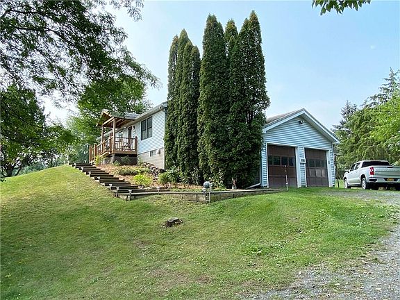 Fabulous Hilltop setting on 3.24 Acres! Long time owners have meticulously cared for this home. Everything has been Updated - New spacious Eat-In Maple Kitchen w/Quartz counters 2014, sliders to large rear deck; Beautiful ceramic tiled floors throughout; newly remodeled Bath 2019; new Pella windows & Andersen doors 2013; New Metal Roof 2016, Newer $20,000 gas hot water radiant floor heating system, New AC split system 2018, Smart Water Use Sensor, newer Front & Rear Decks! The full unfinished walk-out Basement has lots of finishing potential and features roughed in plumbing for additional Bath, a level Walkout w/Sliders to rear yard, in addition to level access to attached 2 car Garage. A very private wooded setting in the rear w/greenhouse/shed & distant hilltop views from the front porch! MUST SEE! Delayed Negotiations - An offer can be accepted anytime after 5:00 PM Sunday 9/19.
