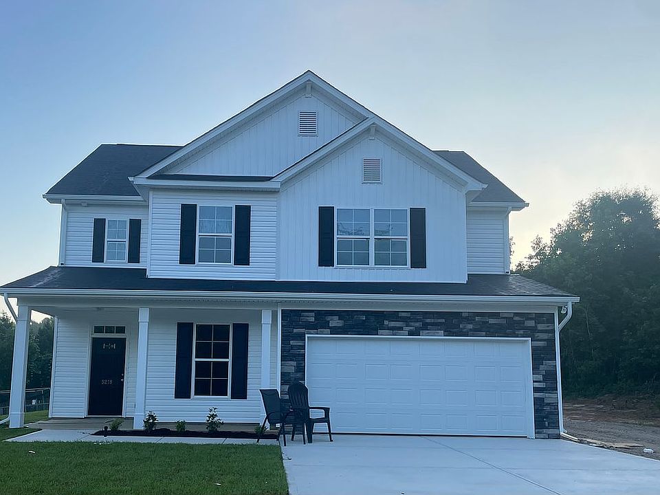 2 story, 4 bedroom, open floor plan. Covered 200 sqft rear porch. 2 car garage. 4.47 acres with creek. Downstairs: open kitchen and dining, master bedroom, and flex room with French doors. Upstairs: large loft and 4 rooms: office and 3 bedroom with 1 jack and Jill bath and 1 guest.