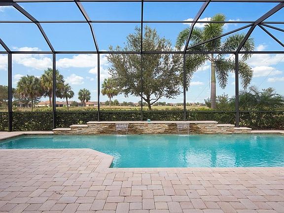 This impeccable, 3 BR/3.5 BA tropical getaway in Esplanade Golf & Country Club awaits your arrival. Enjoy a resort lifestyle with breathtaking panoramic views and over-the-top amenities, including a new culinary center, fitness center, clubhouse, dining venues, tennis courts, lagoon-style pool, wellness center, spa plus transferable golf membership. Golf lover? Enjoy playing golf every day during your stay, for only a one-time fee of $250. Relax by your private pool and hot tub. As you enter the spacious foyer, you will find an impressive great room with stunning details and interior design elements including beautiful wood floors, plantation shutters, coffered and tray ceilings plus crown molding. The chef's kitchen has modern cabinetry, quartz countertops and stainless-steel appliances. The master bedroom features a large decorative king-size bed, California closets & sitting area. Your luxurious ensuite master bathroom boasts marble floors, double sink countertops, wooden cabinetry, a jacuzzi tub and an open shower. The first guest bedroom features a king-sized bed, a 55" flat-screen TV and an ensuite guest bathroom. The third guest bedroom offers 2 twin beds and guest bathroom with a walk-in shower. Experience Lakewood Ranch/Sarasota including St. Armand's Circle which offers boutique shopping, dining or visit our award-winning beaches. This magnificent area seamlessly combines the relaxed energy of a small beach town with cosmopolitan life, in this tropical getaway not to be missed!