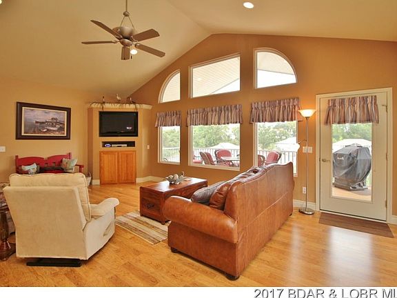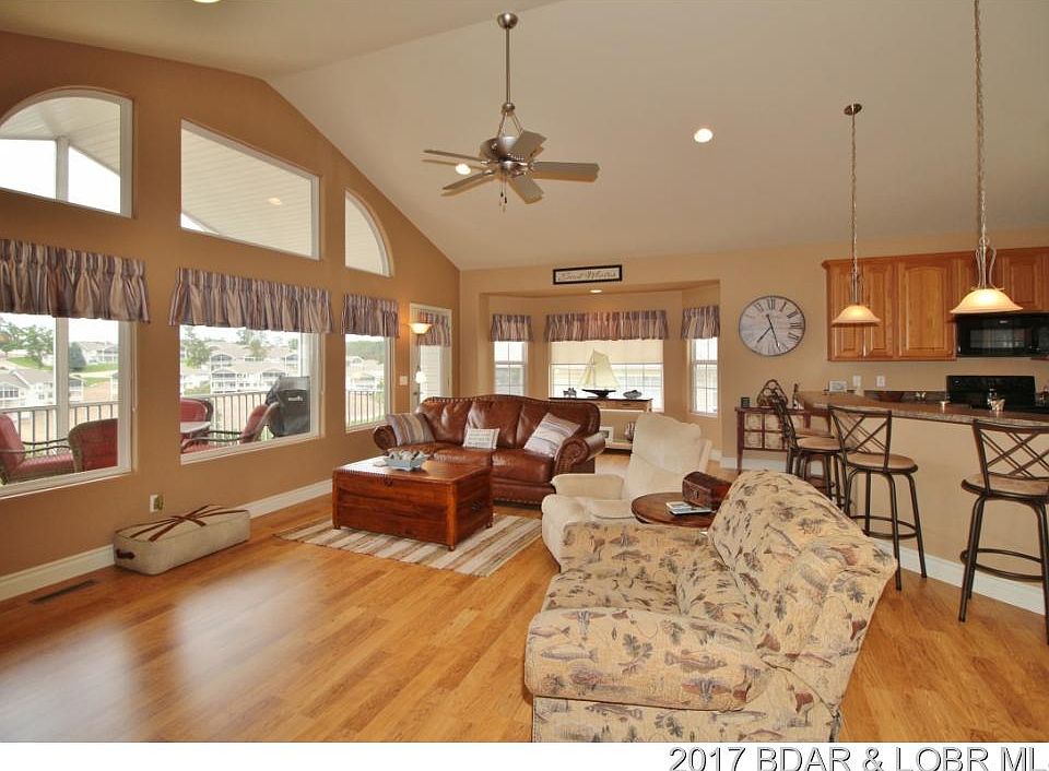 Let the good life begin with maintenance free living at the Villas at Grand Glaize, one of the most convenient & sought after locations at the Lake. This beautiful main level living villa is meticulously maintained, spacious & loaded with custom upgrades, including vaulted ceiling, a gourmet kitchen and beautiful oak cabinets. The large master bedroom offers a coffered ceiling & master bath with walk in closet. You'll find yourself gathering with your friends & family in the large open kitchen or enjoying the views of the cascading ponds & colorful fountains from the large screened deck! The best is yet to come--a 12x36 Man Cave/Extra Garage (M3) with stained concrete floor,completely insulated all for an additional $25k. Won't last long!