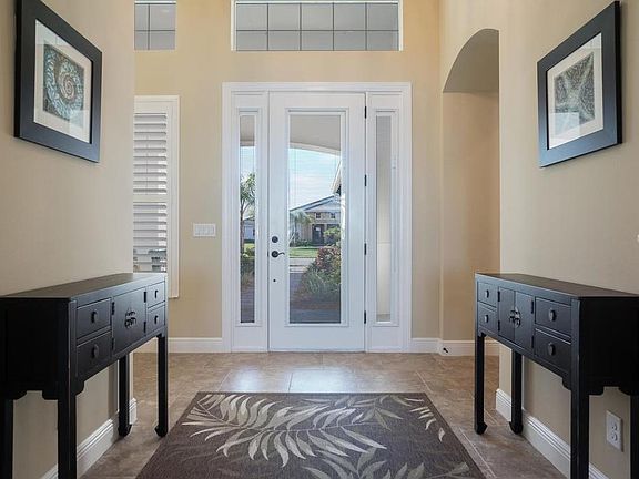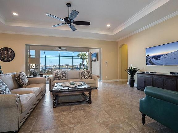 This waterfront 3 bedroom 4.5 bath Agostino floor plan shows like a model offering a spacious floor plan including an informal dining room, gourmet kitchen, great room, tastefully finished den/office w/ wood flooring, and a fabulous owner's suite w/ custom closets. The upgrades in this home are too numerous to list and are high end distinctive finishes. Decorator's touches include the recessed ceilings in the great room, dining room, foyer and master suite. The two attached 1 and 2 car garages offer a handy "Florida Basement" with room for all your toys. This beautiful home offers views of the Lagoon from the backyard, lanai, master suite, dining room, living room or dock. The large screened lanai with heated pool/spa and custom privacy curtains is great for entertaining. Natural gas is available in the covered lanai area. The rear waterfront view is a long view of the Lagoon w/ direct access to the Manatee River through either of the 2 lifts. The dock has a 10k lb. boat lift w/ high speed motors facilitating up to a 32' boat. The Tidewater community fees are modest and amenities include a private marina, two club houses including The Lodge with its beautiful resort style pool, fitness center, community room. In addition, outdoor enthusiasts will enjoy the 3 Har-Tru tennis courts as well as the canoe and kayak park with free use of the canoes and kayaks. Enjoy the privacy of a 24/7 staffed gatehouse, lawn and landscape maintenance is provided throughout the community, a full time lifestyle director