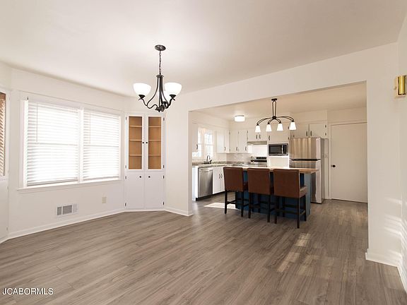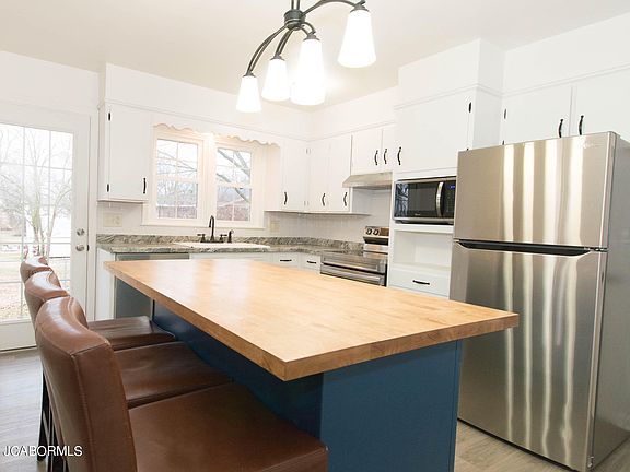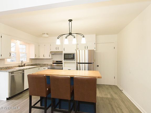 Beautifully updated 2 bed, 1 bath home conviently located in downtown Russellville. The kitchen boasts stainless appliances, a tile backsplash, and an island bar with a butcher block top while the bathroom showcases a beautiful tile shower and a spacious vanity. This homes many enhancements also include luxury vinyl plank flooring and modern light fixtures along with a newer air conditioner and vinyl windows. Appreciate main-level living with an attached garage, laundry room, and multiple built-ins. The level lot features a partially fenced backyard with additional space beyond that would be perfect for additional parking or a shop.