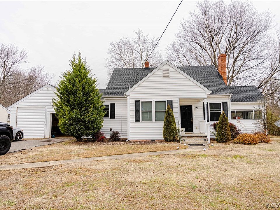 Nearly a half acre within city limits close to Hull St. and Walmsley Blvd, and a few steps from JL Francis elementary school!! This well-maintained cape home has four bedrooms and 1.5 bathrooms. Roof, HVAC, windows and siding around six years young. Main level includes mostly hardwood floors, the primary and an additional bedroom, with a full bath in the hallway. An enclosed porch totaling an estimated 120 sq. ft. is attached to the living room. Spacious dining room and kitchen with a nearby half bathroom. The second level includes two additional bedrooms. Two-car garage with large deck and rear yard! This could be Yours!!