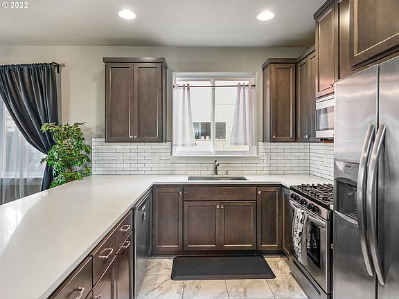 Delightful, Sunny, and Spacious home located in the Center of Scappoose. Great location near schools, shops, restaurants, library, Veterans and Heritage Park. Enjoy this home's many features including: skylights, stainless steel appliances, a generous kitchen pantry, quartz countertops, gas stove & a cozy fireplace. Try out your green thumb on the raised garden beds. Entertain friends and family with summertime fun in the fully fenced backyard yard. What a great place to call home.