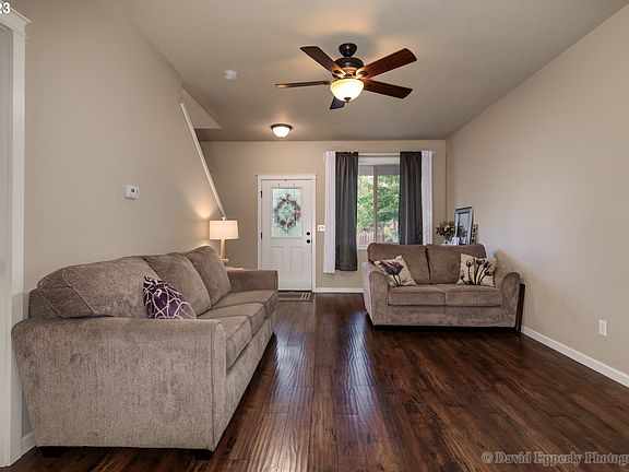 This charming 3 bedroom, 2 bathroom home begins with an inviting entrance to the property with a covered front porch. The main level features laminate flooring throughout, adding a touch of elegance to the living room, which includes a cozy gas fireplace. Adjacent to the living room is a dining room with a slider leading to the patio, offering an extra space for entertaining. The kitchen is equipped with a breakfast bar and features granite countertops, adding a beautiful and functional touch. The primary bedroom includes an attached bathroom and a walk-in closet for added convenience. Step outside to the backyard patio and enjoy the privacy of a fenced backyard. Situated in a great neighborhood and conveniently close to Hwy 30, this home offers both comfort and accessibility for its residents. Don't miss out on this opportunity!