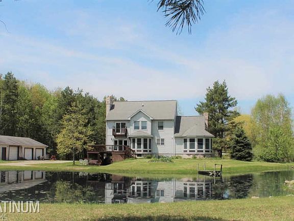 Paradise in Michigan! Come see this beautiful New York architecture designed 4 bedroom home before itâs gone! This home features double cathedral ceilings, custom built staircase, 2 car attached and 3 car detached garage with service pit, wine cellar, walk out basement, 30+ Anderson windows, 50 year roof, fossil rock fireplace, 3 heating sources(wood burning, natural gas, GEO thermal ready) 2 ponds (one with its own island and the other with a custom built water fall) all happily resting on 5 beautiful acres in a park like setting. Also included is a 360 hand polished Austrian crystal chandelier which illuminates the great room in an all natural rainbow glow when the sun beams its ray. This beauty was featured in the Dream Home Magazine in the past years and can be your dream home today!