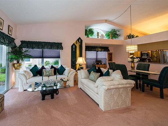 Nicely landscaped lot welcomes you to this lovely Villa in Wimbledon Greens at Lake Bernadette! This Two bedroom; Two bath unit has NO CDD. Covered entry into the house from the One-Car Garage with Foyer Entry that is open to the Living/Dining Room Combination with views to the conservation area to the rear of the home. Nicely updated Kitchen with Nook area by the Front Window with Plantation Shutters. Kitchen was updated in 2010 and features stainless steel appliances with upgraded Range, Granite Countertops, Pull-out Cabinets, Closet Pantry and much more! The laundry room is oversized and has extra space for shelving and/or storage cabinets. The Owners Retreat is located at the rear of the home with lots of natural light and great views and the Bathroom was updated in 2010 with granite vanity and cabinets and features a large walk in shower, linen closet, and the huge walk in closet. The bedrooms are "split" with the second bedroom and guest bathroom located at the front of the home. The HOA takes care of the roof replacement, mowing and trimming of the grounds, and the exterior painting. Newer Gutters with leaf filters and Rear Gutter is extended underground to gully. One car Garage with remotes for opener and Keyless Entry. Enjoy the Views of The Links at Lake Bernadette Golf Course right from the comfort of your new HOME!