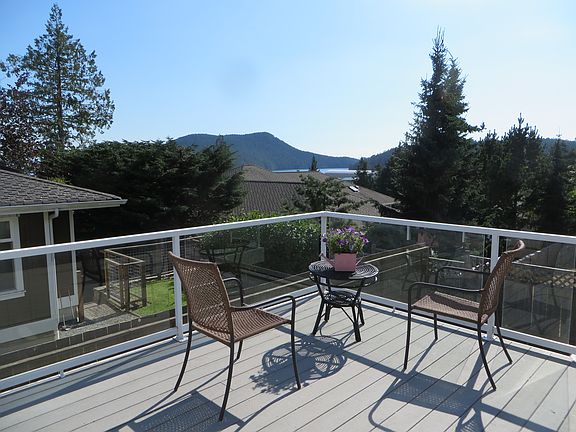 REDUCED PRICE! Enjoy the spectacular panoramic views of the bay, marina, mountains & channel from this Spacious Spinnaker Cove home with pastoral setting. Great room including living & dining + upgraded kitchen walk-in pantry & SS appliances. Main level master with seating area, large walk-in. 5 piece master bath w/slate floors, hand laid wood floors, 2 FP's, view loft, den, large garage, built in vacuum & room for shop. Close to parks, marina & trails. Seller home warranty & well managed HOA.