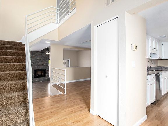 Seller will accept or counter offers between $225,000-$235,000. Gorgeous Remodeled Townhouse in the desirable Community of Mescal Place. Charming gated courtyard entry, soothing palette, beautiful bamboo wood floors, modern railing to 2nd level, stone wood fireplace, ceiling fans, & patio access from great room. Formal dining room, granite kitchen counters, SS appliances, & plenty of white cabinets w/hardware. Plush carpet in both generous sized bedrooms, ample closets, balcony access from master, & private en suite. Interior washer/dryer closet for your convenience. Community Pool. Easy access to Shopping, & more.