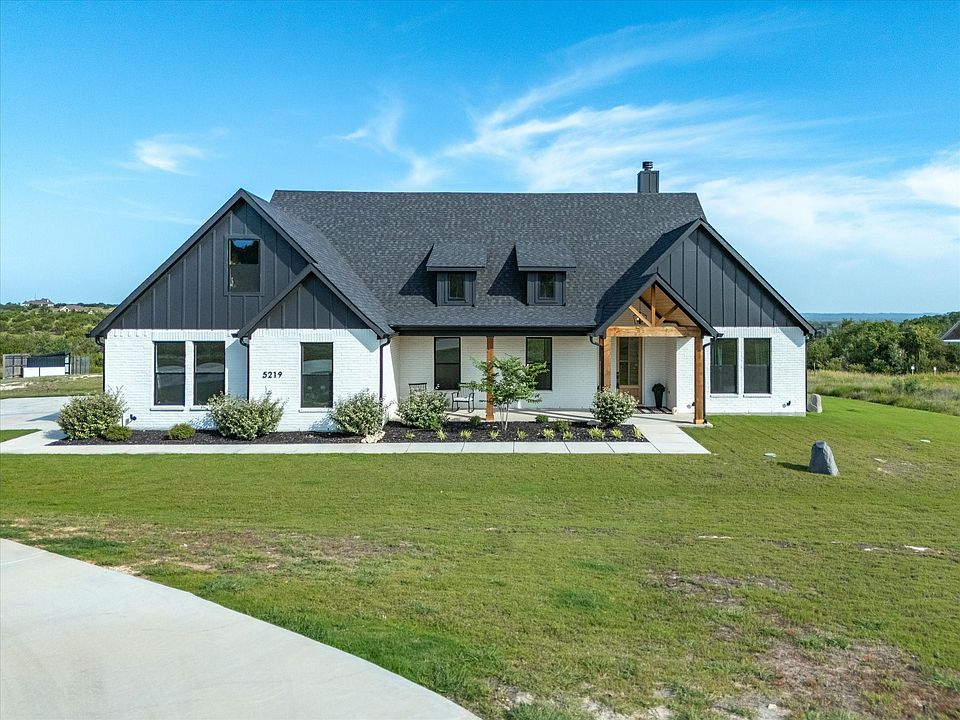 Realtors often embellish but this Modern Country Classic listing is truly next level! It's the perfect blend of a timeless and welcoming, homey feel while staying with the moment! GORGEOUS interior color scheme with stunning, on trend light white oak hardwood floors, soaring ceilings and playful touches throughout much of the home! Great design with gorgeous kitchen that opens to a big family room with the edgiest fireplace and incredible windows that bring the outdoors in, plus upstairs flex space that is an ideal game room or media that also doubles as 5th bedroom, complete with closet and ensuite bath! Arguably the most impressive part of the property is its AWESOME back patio and backyard with the most STUNNING modern pool and spa, plus a fun outdoor putting green! All of this and on 3.2 acres of terrific views and rolling countryside! Acclaimed Brock ISD!