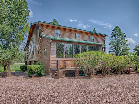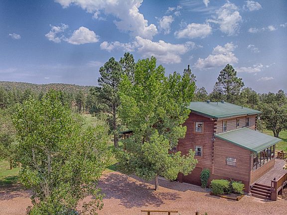 Country Charm awaits you in the beautiful White Mountains of Arizona. As soon as you start up the drive this mountain log cabin draws you in! Located on 10 level acres- this home has been well loved and cared for over the past 25 years. The large covered porch offers a gorgeous view of the pasture, national forest lands, and tall pines. The ideal cabin features hardwood pine floors in the living space with vaulted ceilings. A formal dining area, den and Arizona Room are all located on the lower level. The kitchen features granite counter tops and lovely views of the property. There is a wrap around porch as well Upstairs features the master suite with upgraded bathrooms and two charming guest rooms. Every room offers beautiful views. Set up for horses the property offers a