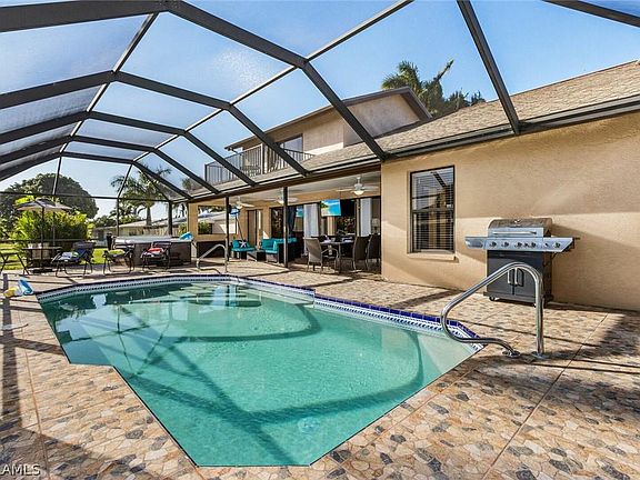 Calling all boaters! This direct gulf access, pool home is located in the sought after Yacht Club area and is a ten minute ride to the gulf. Sold turnkey, this is perfect for a vacation home or rental. This two story home has a new roof and 2 new skylights that were replaced in March. The pool was recently resurfaced. This home has a great room floor plan with 4BR+den, 3 full baths, and over 2,200 sf of living area. It comes equipped with two master suites: one on the ground floor and one on the second floor. The second floor, master suite balcony overlooks the pool and canal where you can wake-up to the sun shining and enjoy your coffee in the morning or a nightcap in the evening. There is a large kitchen for the cook in the family equipped with stainless steel appliances and granite countertops. You will love entertaining in the large dining area or the oversized, extended lanai. Go for a swim year round in your heated pool, soak in the hot tub, or walk down to the captains walk that has a 7,000 lb boat lift. You'll enjoy all this home has to offer as well as well as the proximity to the beach and downtown Cape Coral.