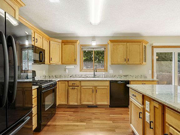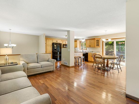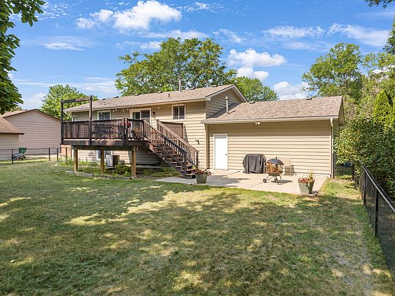 Welcome to this stunningly maintained home. This property has undergone numerous updates including primary suite, custom walk-in closet, primary bathroom complete with dual sinks, custom cabinetry and heated floors ensuring a modern and luxurious living experience. Step outside onto the large wood deck and concrete patio, where you'll see the fenced-in yard and a spacious shed for additional storage. One of the highlights of this property is the oversized, heated 2-car garage. Not only does it provide ample space for your vehicles, but it also offers direct access to the patio in the back, making it perfect for entertaining or enjoying outdoor activities with ease. The kitchen features a beautiful new granite countertops and a stylish backsplash. Situated in a great location, this home offers easy access to a walking path just off the cul-de-sac and within school district 885. You'll also find shopping and restaurants in close proximity. Don't miss out to make this your new home!