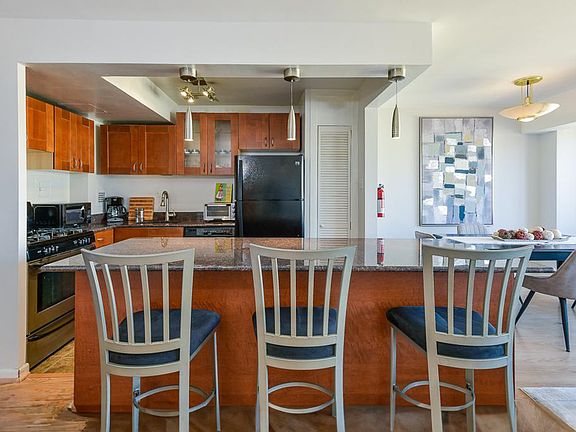 Feel at home in this charming apartment featuring a modern kitchen with granite countertops, a gas stove, and stainless steel appliances. The bedroom offers a cozy queen-size bed, and the property includes in-wall unit air conditioning. Enjoy the convenience of an elevator and a shared roof deck with stunning city views. The kitchen is fully equipped with all the tools needed for cooking, making it perfect for preparing meals at home. The building offers a coin-operated laundry room for your convenience. Located in Foggy Bottom, one of Washington, D.C.'s oldest 19th-century neighborhoods, this apartment is just a 5-minute walk from the Foggy Bottom Metro Station, serving the orange and blue lines. With a Walk Score of 95, it's a walker's paradise, and it also boasts a Transit Score of 82 and a Bike Score of 86. Additional verification is needed for this property.