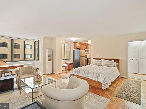 Un- Occupied unit. Wonderful Foggy Bottom location! Bright , south facing, spacious studio apartment (528 sq ft) featuring expansive windows, gleaming parquet hardwoods floors, updated kitchen (stainless appliances, granite counter tops and tasteful tile backsplash). Generous closets space for ample storage and modern bathroom with Kohler fixtures. Parking space #P25 (DCDC462162) is available for purchase separately ($38,000). So convenient to George Washington University, State Department, Ken-Cen, Red Cross HQ, IMF, White House complex, World Bank, Whole Foods, K Street and Metro. Reasonable condo fee includes ALL UTILITIES! Walk score of 97. The Monroe House is a secure elevator building with generously sized roof deck for summer entertaining! The building allows for 3 month leases. Perfect for end-user/owner, pied -a-terre or investor. Sold in "AS-IS" condition.