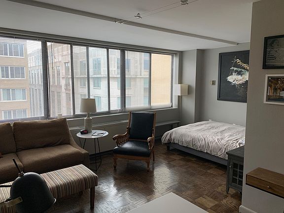 FULLY FURNISHED, large, south facing studio in a great Foggy Bottom location. Large windows with sun streaming through, and L-shape floorplan creates several distinct living places. Apartment 807 is located on a high floor with updates throughout, large custom closets, and modern, stylish furnishings. Wood floors, new ac/heat unit, stainless appliances, large windows and contemporary lighting add to the special features. Building amenities include 24/7 secured entrance, onsite management, laundry facilities, rooftop deck and in-building parking space is available on demand for an additional $250/mo. All utilities included in rent (water/gas/electric) except internet. Full time doorman & super. No pets. No smoking. Walkability Score 95 Located near White House, State Dept, World Bank, IMF, Kennedy Ctr, GW Hospital, metro and buses, nightlife, restaurants and grocery stores (Whole Foods, Trader Joe's, etc.). 3 minute walk to GWU Gelman Library. 1 year lease. All utilities / services included except internet.