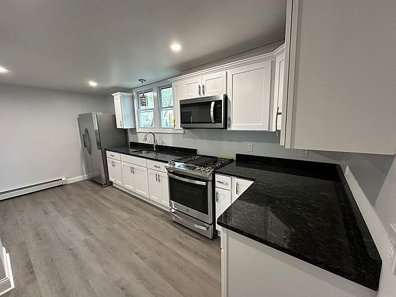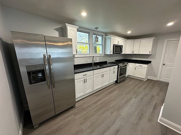 Welcome home to this fully updated 4 bed, 1 1/2 bath home. On the first floor we have a brand new kitchen with new granite countertops and brand new appliances. Also we have a fully renovated bathroom and new flooring through out the entire home. Also we have a large living room or bedroom and dining room. Second floor boasts 2 bedrooms with brand new carpet and some built ins. The basement has a large finished 4th bedroom with its own 1/2 bathroom. Use this space as an office or in house gym, also has full walk out. Other updates include new interior doors, new garage doors, newer furnace with brand new baseboard heat. Along with new electrical, new plumbing,insulation and drywall!