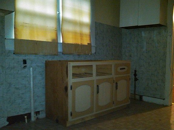Exterior Features: Single story, "Shotgun" house, siding is in decent condition, may need a few replacements, and repairs. Roof is in fair condition, no leaks, foundation appears sound, no signs of shifting. Front porch is covered and in decent shape. Yard is in fair condition, may need some grooming. Parking looks available on the street. Interior Features: Living room has ply wood flooring, white walls, trim and closed fireplace, possibly winterized. Kitchen has vinyl floors, lower cabinets but the rest of the kitchen has been gutted. The master bedroom has plywood flooring, tan walls, white trim and acoustic ceilings. The second bedroom has plywood floors, tan walls and white trim. The bathroom is in poor condition, wood floors, tub and toilet are the only remaining appliances. A Hot Water Tank was found inside the home.
