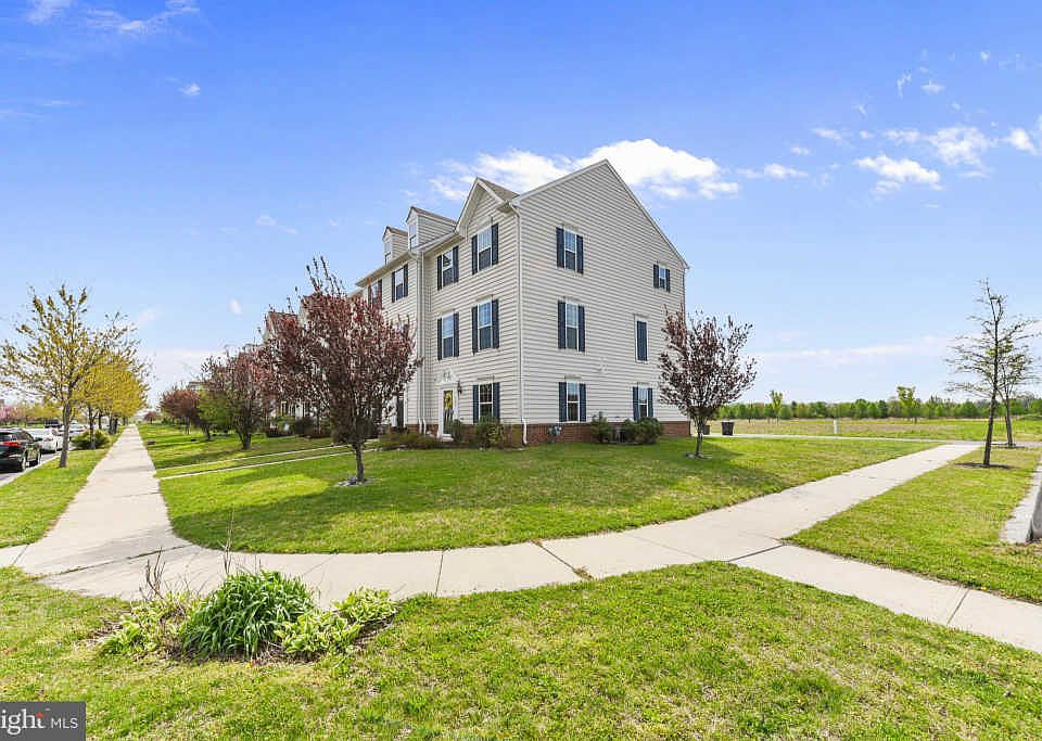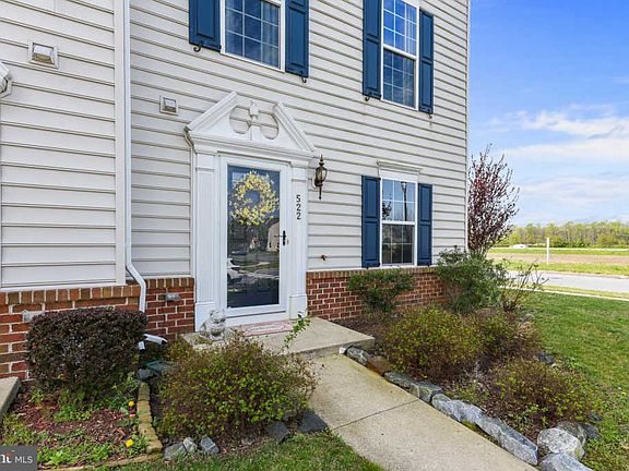All kinds of appeal at 522 Ann Moore St.! Premier end-unit townhome in exceptional Eden Hill Farm community offers 3 finished levels of living with privacy abound. Huge corner lot allows for sprawling open space on front, side and back of 3BRs/2~ bath home, while ribbon of sidewalk wraps around, offering ideal option for morning jogs and evening strolls. Front exterior consists of classic cream siding, highlighted by Williamsburg blue shutters and front door along with lower part of home made up of brick. Front door has ornate millwork surround and is eye-catching, and rear-entry 2-car garage keeps front exterior clean and crisp. Hardwood foyer is nicely-sized with white French doors granting access to carpeted study. Mud room and PR grace this level as well. Carpeted turn staircase leads to main living floor where there is nice blend of FR, Kitchen and DR. Kitchen and dining area/DR sit to back of home and are seamless to each other, creating wonderful niche for entertaining making it easy to go from preparing dinner in kitchen to enjoying it in DR. Both rooms have handsome hardwood floors and neutral beige paint. Kitchen touts sleek look! French-roast color 42~ cabinets are dramatic and paired with SS appliances and quality countertops, room exudes elegance! Center island with bar seating is ideal for everything from morning coffee to afternoon snacking to evening dining! Adjacent is dining area/DR where single pendant light in stylish pewter/frosted glass adds upscale touch, immediately setting inviting tone. Glass sliding doors grant access to generous deck with railing, which currently looks to open space dotted with trees, perch for quiet reading or lively entertaining! ~ wall separates DR/kitchen from casual FR space. Cloud gray paint adorns walls, where there is plenty of space for prints and photographs! Hardwoods turn to carpeting, softening room~s personality and with comfortable chair in alcove bordering steps it~s easy to see how this is go-to-gathering space! Large in size, room can easily accommodate big couch, love seat and multiple chairs/accessories. 2 windows keep room light, and ceiling fan maintains comfortable temp. Steps lead to upper level where 2 secondary BRs have oversized windows, roomy closets and carpeted floors, while MBR touts all those amenities along with walk-in closet as well as bath with dual-sink vanity. Both baths have tile floor and dark, handsome vanities, and with neutral paint 1 bath has blue accents, while other bath features tan hues. Fabulous feature is convenience of upper floor laundry room. DD slide back to reveal W & D with dual-purpose wire shelving so one can store laundry detergent and softeners, and hang delicates! Home is nearby to both Rt. 13 and Rt. 1, making Northern cities of Newark and Wilmington easily accessible as well as southern points of beach and beyond direct drive! Head-turning townhome!