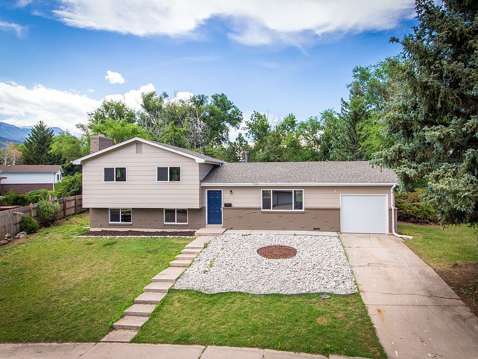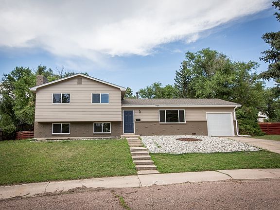 Stunning full remodel in the very desirable Cheyenne Mountain #12 school district* This home is virtually move in ready* Brand new roof and new paint on the exterior* Inside has brand new interior paint, flooring, countertops, fixtures* As you walk inside the front door you have a convenient coat closet as well as gorgeous wood floors that flow throughout the living room and Dining room* Eat In kitchen has all new ceramic tile flooring, cabinets, Granite countertops, and Stainless Steel appliances* Truly a chef's kitchen. The opening to living room and walk out makes even more inviting to cook in* Upstairs are 3 bedrooms each with wood floors* Upstairs is a fully remodeled full bath with new ceramic tile and vanity* Lower level is finished and has a cozy family room with a wood burning fireplace* 4th bedroom downstairs as well as 3/4 bath* Laundry room also has some storage space as well* Attached 1 car garage* You are conveniently located on the west side with numerous shopping amenities and attractions close by such as seven falls and Helen Hunt falls*