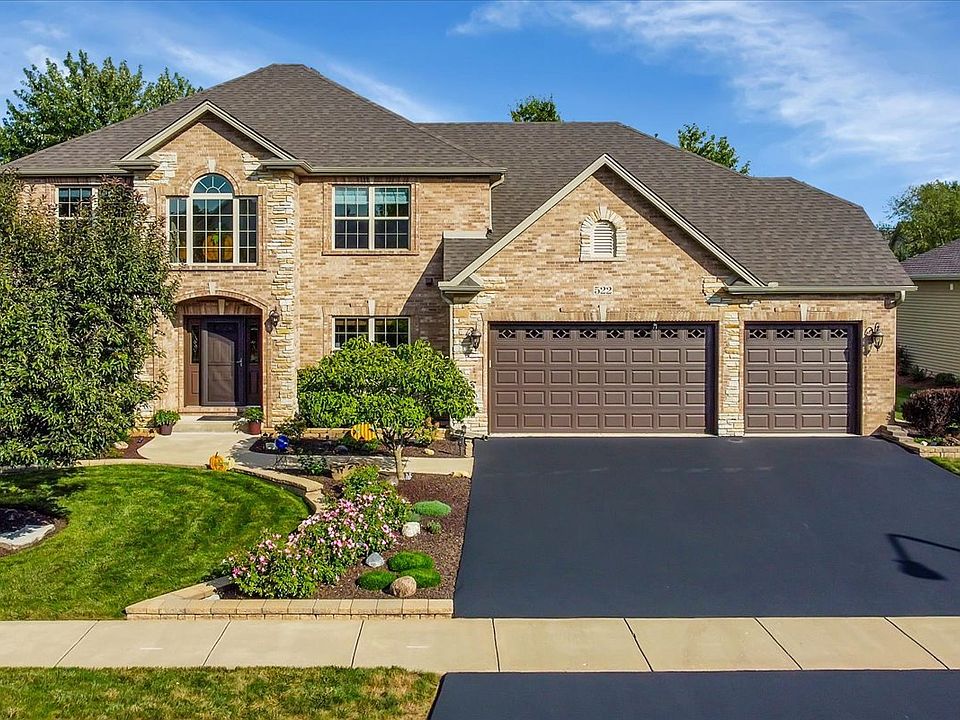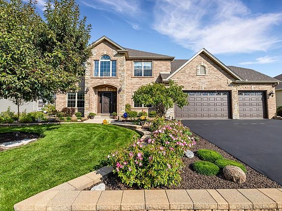 Welcome to this gorgeous, meticulously maintained home in Heartland Circle! This impeccably crafted home offers the perfect fusion of comfort and elegance, ~3,000 sq ft of living space, 4 bedrooms, 2.5 bathrooms, an office, and a 3-car garage. The well-appointed kitchen, boasts gleaming hardwood flooring, stainless steel appliances including a stove, microwave, dishwasher (all 2017), new sink, faucet, disposal (all 2022) and a new high-end smart refrigerator (2023). These modern appliances complement the granite countertops, beautiful cabinetry, and large island. The family room, with its vaulted ceilings, exudes an open and airy atmosphere, featuring a charming brick fireplace. Separate living room and dining room with tray ceiling allow plenty of space for entertaining. The primary bedroom is your personal oasis, with a spacious layout, a luxurious ensuite bathroom featuring a soaker tub, dual vanities, and a separate shower, as well as a huge walk-in closet. The full unfinished basement is ready for your finishing ideas or to keep as a huge storage area. Step outside to the newly refurbished brick paver patio (2021), a fantastic space for outdoor entertaining and relaxation. The serene backyard backs to a 35 ft grassy buffer to the paved walking path! This home boasts so many more updates! New Roof, New Gutters, New Siding, New A/C unit, New Front & Rear doors, New 50-gallon water heater (2020)! New 97% Energy-Efficient Furnace, New Humidifier, New Smart Thermostat (2021). New Insulated Garage Doors (2021). New Smart Garage Door Openers, New Smart Washer & Dryer (2023). Newly refreshed front landscaping (2022). Newer driveway (2015). Security System with 3 Ring cameras, 2 Ring motion lights, and Ring doorbell. Enjoy living close to schools, parks, a sledding hill, shopping, medical facilities, a movie theater, trendy restaurants, and the exciting Raging Waves water park! Book your private showing today!