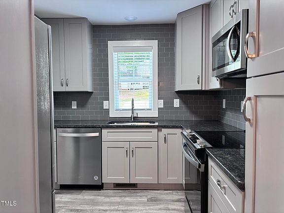 Nicely renovated property upgraded with LVP, SS appliances, new paint and a large open first floor. Second floor has 3 bedrooms, one with a primary bath and the other two bedrooms have a Jack and Jill bath with a close off to tub/toilet. Back exits to covered porch area and over looks wooded lot. Easy access to NCSU bus line, area highways, State Farmers Market and downtown Raleigh. No HOA. Lawn care included in rent. Dogs Neg., no cats.