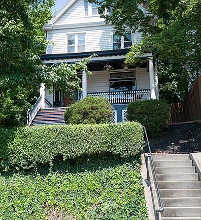 Charm & original character throughout this big Bellevue beauty! Situated on a wooded double lot, it has substantial yard size for the market and 2 car detached garage! You can see the appeal walking up to the home, from refurbished details on the front porch, to original hardwood floors, crown molding, orig mantels & tile, orig solid wood doors & more. Both the rear patio & front porch are nice private shaded places to relax on a nice summer evening! Newly redone kitchen is boasting new wood cabinetry, corian counters, undermounted stainless sink, tiled backsplash, stainless appliances, and ceramic tiled floor. First flr powder room! Spacious full bath with built in linen closet. 3rd flr has two extra rooms that could be used as a home office, gameroom, craft room, or addt'l bedrms. Full size usable basement offers storage space, tool bench, laundry area, and bonus room. Whole house new spray foam insulation! Walkable to Bellevue biz dist and located close to 79, 279, 65 and downtown.