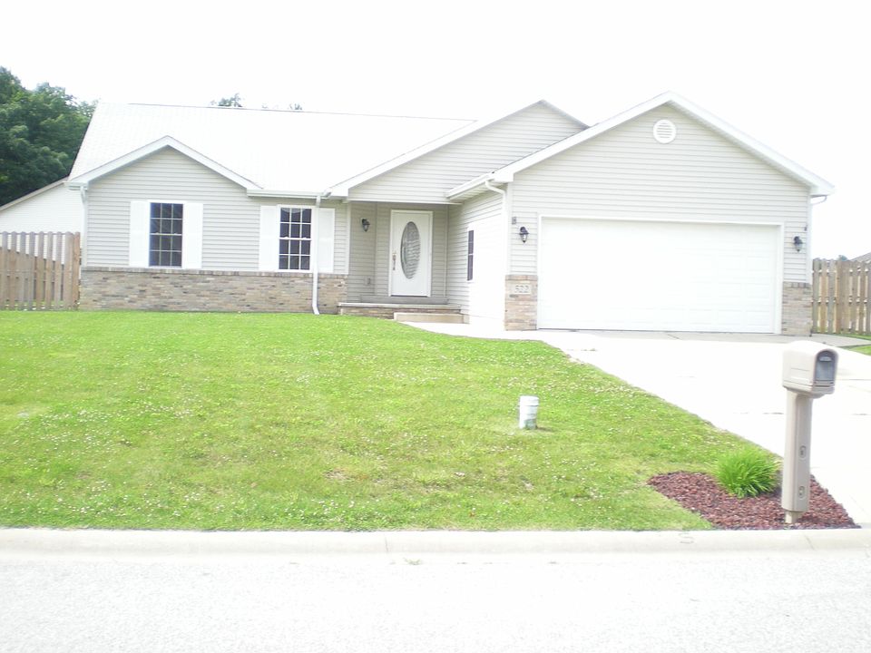 Beautiful brick & vinyl home in desirable Covington Subdivision! Freshly and stylishly painted, new carpet through out.Large 3 Bedroom, 1.75 baths, ranch with 2 car finished, attached garage. Over 1600 sq ft with fireplace in the great room/living room, cathedral ceilings. Large kitchen with beautiful oak cabinets, countertops and ceramic flooring. New stainless,stove, refrigerator, micro-hood,and dishwasher. Disposal included. Master bedroom with walk-in closet and 3/4 bath. Large concrete patio just off the dinette area. Ceramic tile in kitchen, both baths, and utility room. Fenced yard.